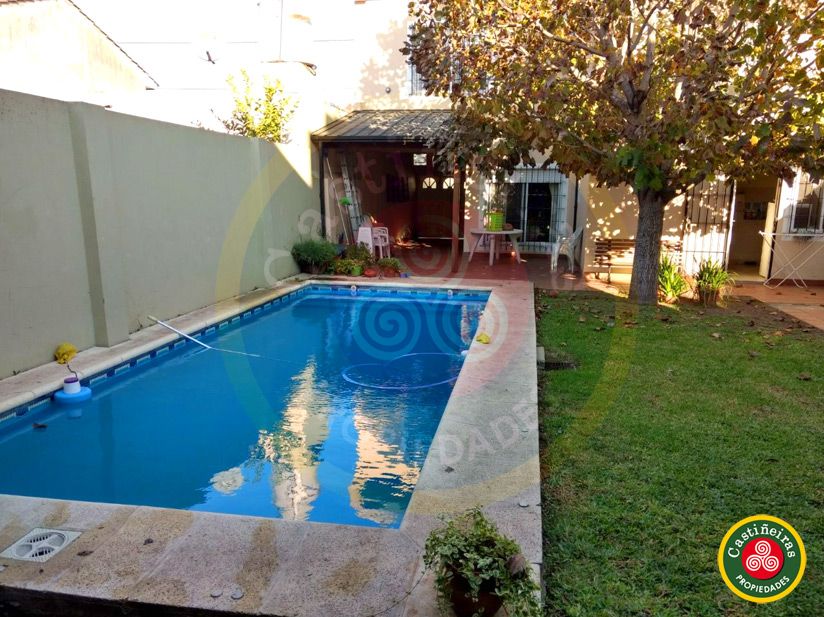 JARDIN al frente; ENTRADA p/ 1 auto descubierta y GARAGE ( 2.44 x 7.48 ) cubierto con lugar p/ 2 autos y pisos ceramicos rusticos; LIVING ( 3.46 x 4 ) c/ hogar a gas c/ ventana al frente, DORMITORIO ( 3.53 x 3.60 ) c/ ventana al frente, que se comunica al pasillo interno y al garage, con amplio mueble placard de pared a pared; PASILLO DISTRIBUIDOR; BAÑO ( 1.70 x 2.13 ) completo original, pero con vanitory y artefactos nuevos, y extracto de aire; COMEDOR ( 4.65 x 3.60 ) con salida al parque y barra desayunadora divisora con la cocina; COCINA ( 3.54 x 3.78 ) completa con HORNO separado del ANAFE ( muy moderno ), y se comunica al LAVADERO y luego al parque; amplio PARQUE ( 17 x 9.70 aprox. ) al fondo c/ PARRILLA cubierta, pequeño BAÑO auxiliar y hermosa pileta de material con cerco de proteccion a medida ( se saca y se pone a gusto ).