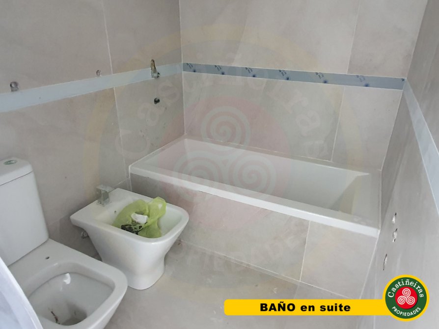 3 DORMITORIO c/ pisos de porcelanato y placard empotrado ( con su correspondiente interior ), y BAÑO completo c/ bañera, vanitory en marmol travertino y accesorios Ferrum o similar.