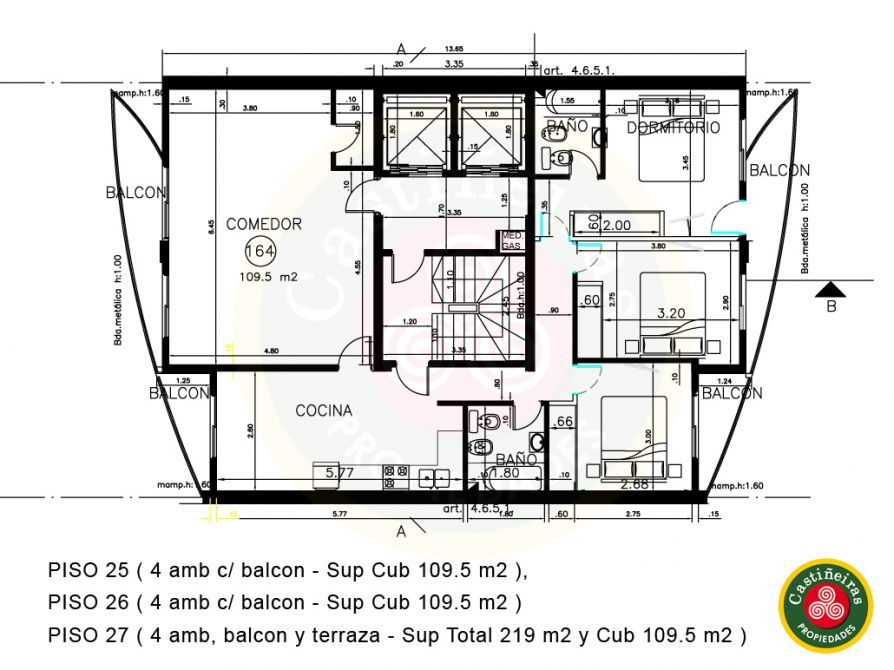 - 25° y 26° ( 4 ambientes - piso entero con BALCON )