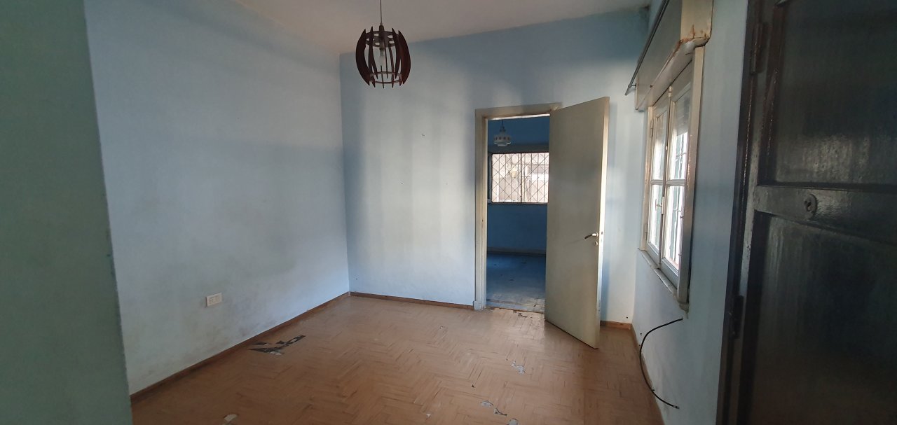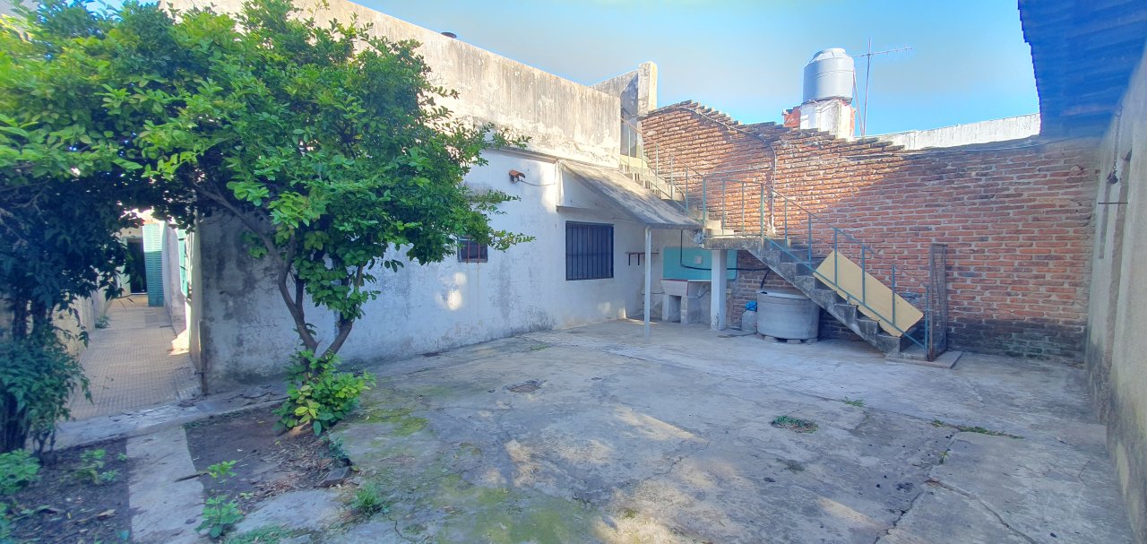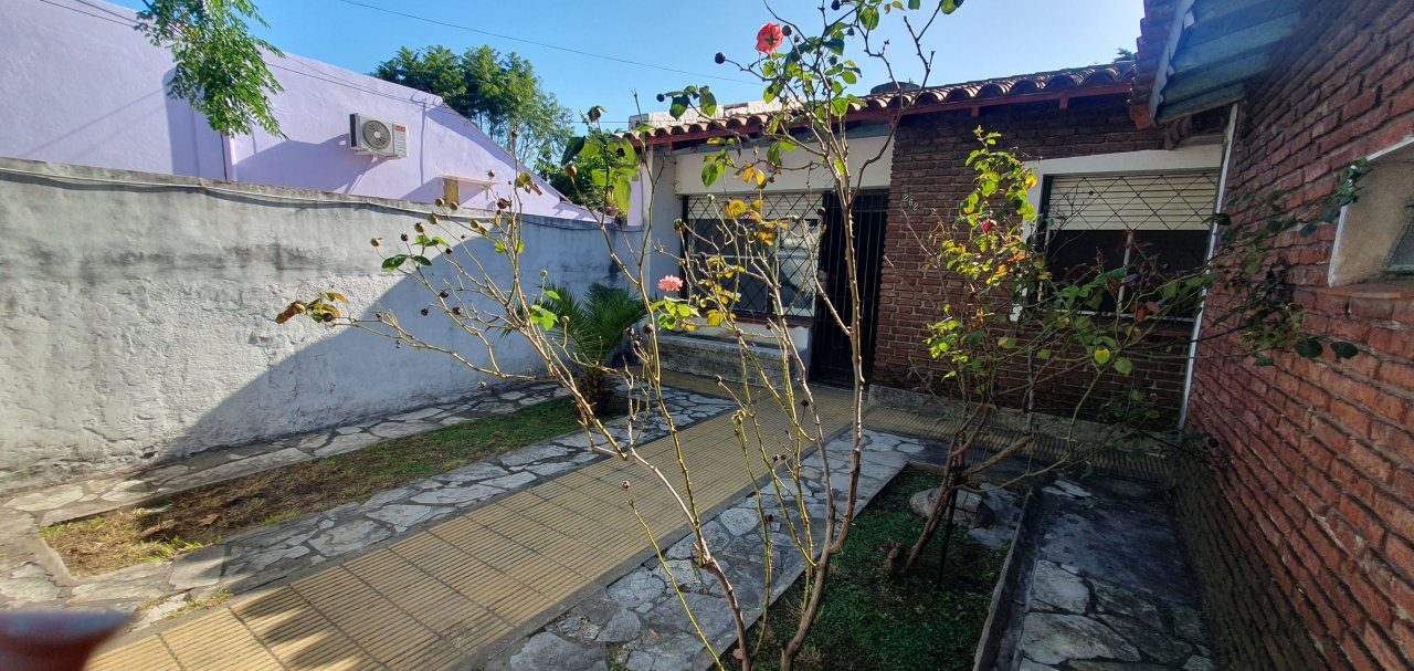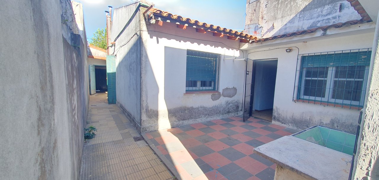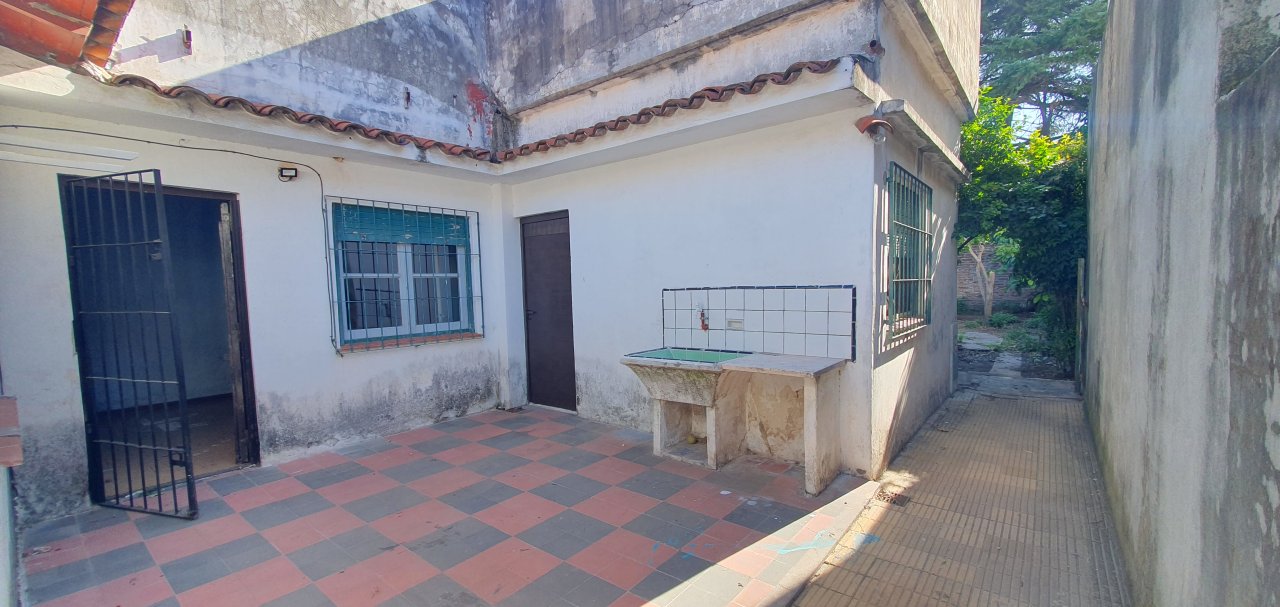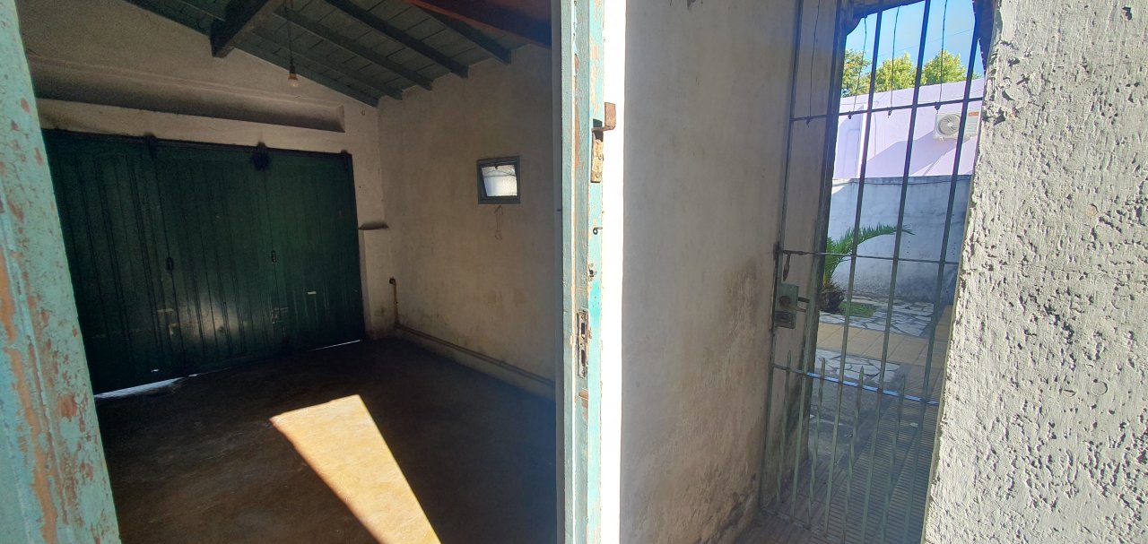 Chalet en muy buena Ubicación con amplio JARDIN al frente ( 5.76 x 6.10 ), GARAGE ( 2.85 x 4.85 ) con porton corredizo, LIV-COM ( 7.45 x 3.20 ) con puerta y ventana al frente, COC-COM ( 2.70 x 3.60 ) con ventana al frente, mueble bajo mesada ( 3 cajones y 4 puertas ) y 2 muebles sobre mesada ( c/u con 2 puertas y 1 estante ), conexion para el Spar; CUARTO contiguo ( 0.96 x 1.95 ) con mueble de guardado ( 4 puertas y 4 estantes ), y salida al pasillo exterior, PASILLO DISTRIBUIDOR ( 0.87 x 2.14 ); BAÑO ( 1.53 x 2.05 ) antiguo completo con bañera ( le falta pintura ), pileta con griferias nuevas, y botiquin ( 2 puertas espejadas, un espejo al medio fijo y 4 cajoncitos ); DORMITORIO 1 ( 2.80 x 3.60 ) con ventana al PATIO principal, DORMITORIO 2 ( 3.40 x 3.20 ) con puerta y ventana al patio principal y puerta al liv-com, DORMITORIO 3 ( 3.20 x 3.20 ) accediendo desde el dormitorio 2, con ventana al fondo y puerta que comunica al PATIO principal ( 3.40 x 5 ), PASILLO EXTERIOR ( 1.13 x 15.40 ) que comunica el frente con el fondo; comodo GALPON ( 3.55 x 4.99 ) en buen estado con techo de chapa y ventanas al fondo, LAVADERO en el exterior bajo escalera de acceso al techo y FONDO LIBRE ( 69.92 m2 = 8.66 x 10.12, descontando el galpón ).