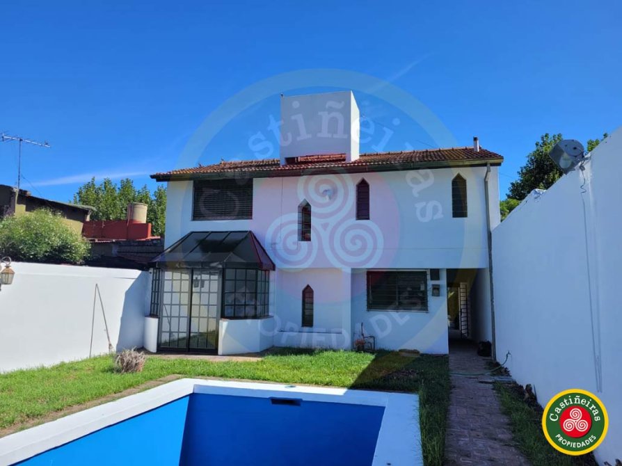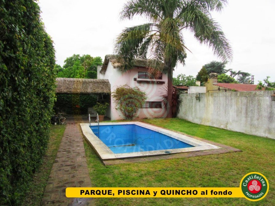 JARDIN al frente con amplia ENTRADA DE AUTO ( parte techada ), amplio LIVING COMEDOR ( 5 x 3.70 ), COCINA ( 3 x 2.60 ), COMEDOR diario ( 3 x 2.60 ) , BAÑO completo con ducha, PATIO, amplio PARQUE con PISCINA de material ( 7 x 3 ) y QUINCHO ( con PARRILLA semicubierta, DORMITORIO con BAÑO en planta baja y SALON de usos multiples en planta alta ).