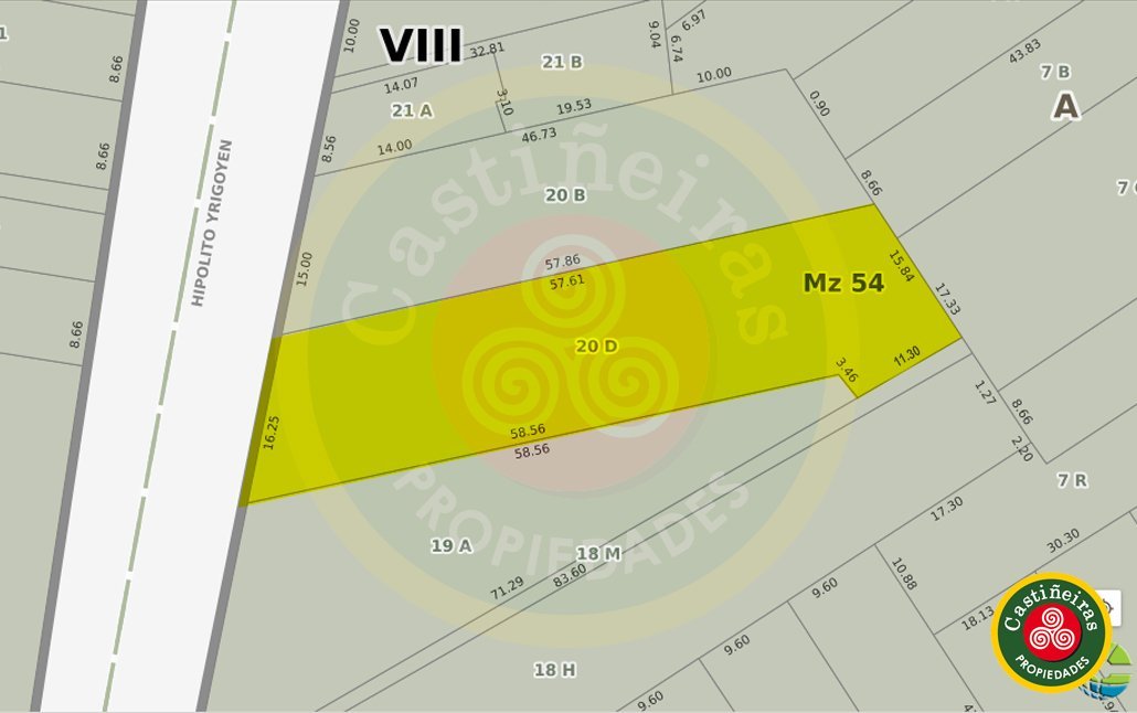 LOTE: Irregular ---- >> Frente: 16.25 Fondo: 59 mts aprox. TOTAL: 960 m2