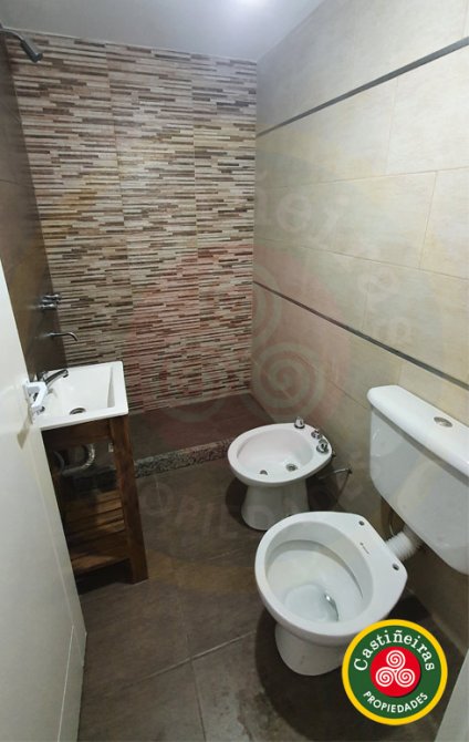 - Baño con mueble vanitory, Inodoro y Bidet de primera marca, accesorios varios. Revestimiento en cerámica y guardas en acero inoxidable.
