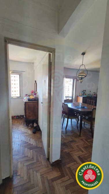 Hall de Entrada ( 0,83 X 1,82 ); LIVING-COMEDOR ( 3,61 X 4,67 ) con salida al BALCON ( 0,83 X 5,50 ), A.A ( solo frio ); COCINA ( 1,91 X 3,37 ) con pisos de mosaico; Pasillo Distribuidor ( 0,84 X 1,56 ); DORMITORIO al Frente ( 2,74 X 2,96 ) + Placard empotrado; DORMITORIO al Contrafrente ( 2,92 X 2,65 ) + Placard empotrado, da al Pulmon del Edificio porque son 2 modulos ( hay buen espacio ); BAÑO ( 1,56 X 2 ) completo con bañera y ventana de respiracion que da al Pulmon del Edificio, con pisos Ceramicos.