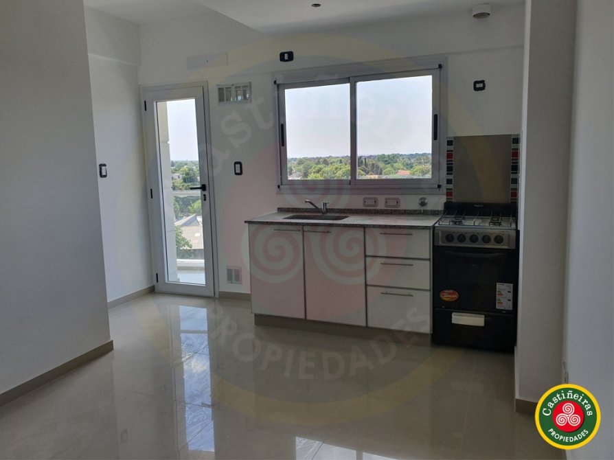 COC-COM. amplia, c/ pisos de porcelanato, bajo-mesada con su correspondiente marmol y bacha doble de acero inoxidable, espacio para el termotanque y desagüe con la correspondiente canilla para el lavarropa, boca de gas extra para colocación de estufa catalítica en el living y salida al BALCON con vista al frente; DORMITORIO c/ pisos de porcelanato, placard empotrado, estufa tiro balanceado y salida al BALCON con vista al frente; y BAÑO completo c/ bañera, vanitory en marmol travertino y accesorios Ferrum o similar.