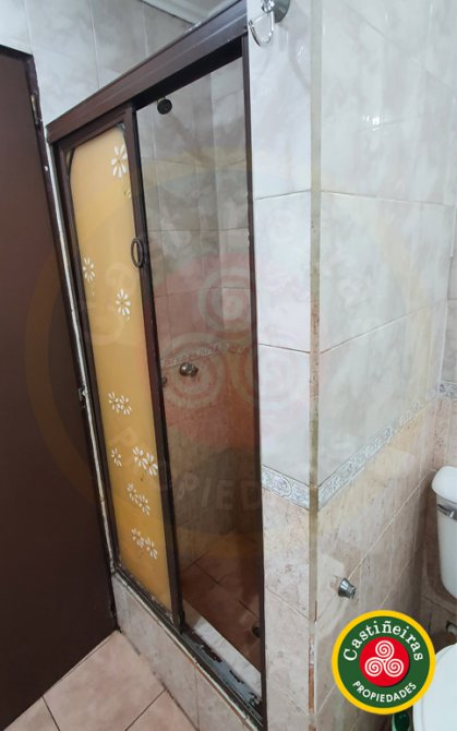 Baño en suite ( 1.20 x 2 ) con inodoro, ducha y mueble vanitory. Pisos y paredes revestidas con cerámico.