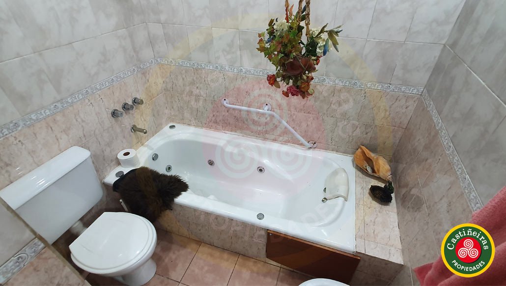 Baño general ( 1.94 x 2.37 ), con ducha, bañera con hidro masaje, inodoro, videt y mueble vanitory. Pisos y paredes revestidas con cerámico.