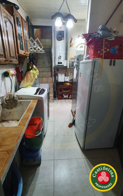 Lavadero ( 0.77 x 1.98 ) continuo a la cocina con piso porcelanato, lugar para heladera, freezer, lavavajillas, lavarropa y mesada con bacha.