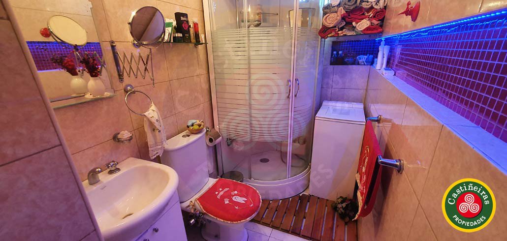 Baño ( 2.89 x 1.37 ) completo con ducha ( totalmente cerrada ). Mueble vanitory moderno marca "Ferrum" con su correspondiente grigería marca "FV". Pisos y paredes con cerámicos. Conexión de lavarropas.