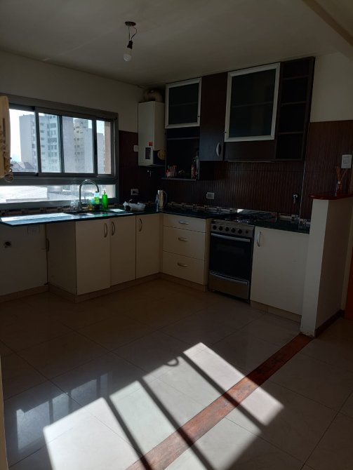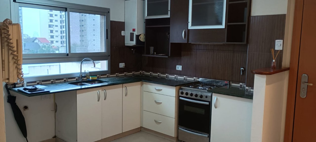 Cocina comedor, equipada con mueble bajo y sobre mesada, conexion para lavarropas, mesada de granito pulido.
