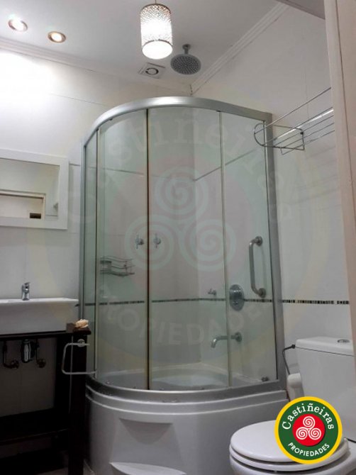BAÑO ( 1.94 x 1.52 ) restaurado a nuevo, revestido con porcelanato ( pisos y paredes ), con bañera semicircular de 50 cm de altura y puertas corredizas de vidrio templado.