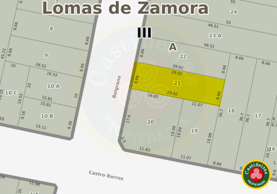 Venta - LOTE 8.66 x 29 - 100 metros de Av. Alsina y 500 metros de calle Maipú - R2-1